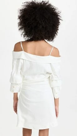 Best deal ⌛ Jonathan Simkhai Monrow Draped Texture Off Shoulder Mini 👕 Shirt 👗 Dress Bone 😉