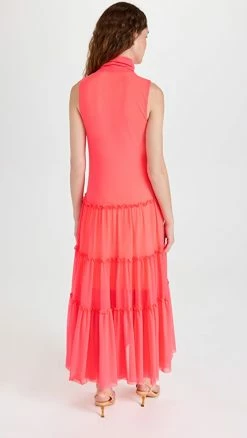 Best Pirce 🌟 Prabal Gurung Sleeveless Turtleneck Tiered 👗 Dress Neon Melon 🎉