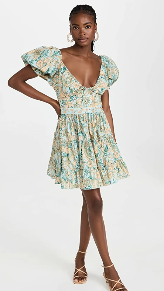 - Banded waist with embroidered floral appliques and beaded embellishments