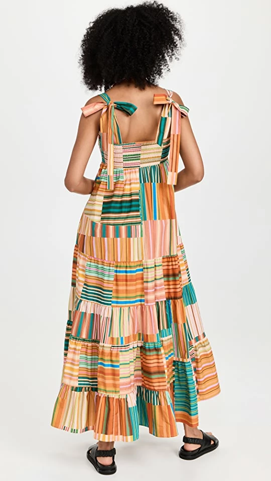 - Tiered skirt and gathered seams