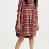 - Collared neckline and button placket