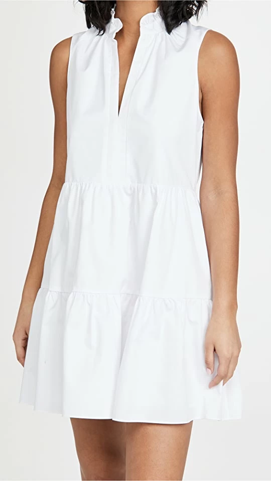 Simple and sweet, this Amanda Uprichard dress is enhanced with a ruffled neckline and flowy tiered seams. All youβre missing is a straw hat and wrap-up sandals for a full-on summer look.