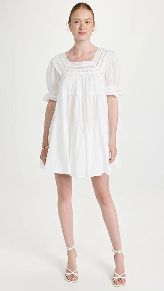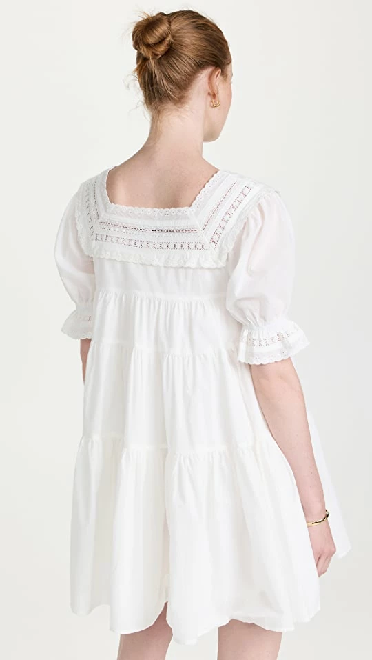 - Square neckline and elbow-length puff sleeves with elastic cuffs