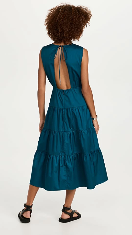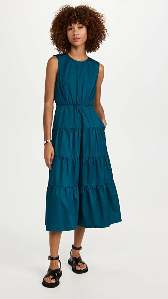 - Tiered skirt and gathered seams