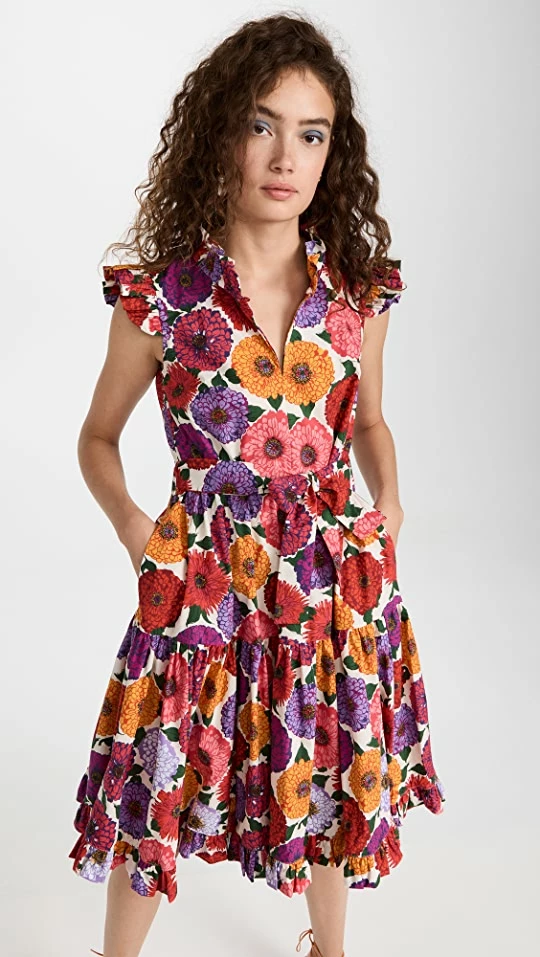 - Capped sleeve and ruffle trim