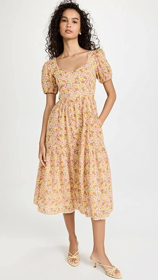 - Tiered skirt and gathered seams