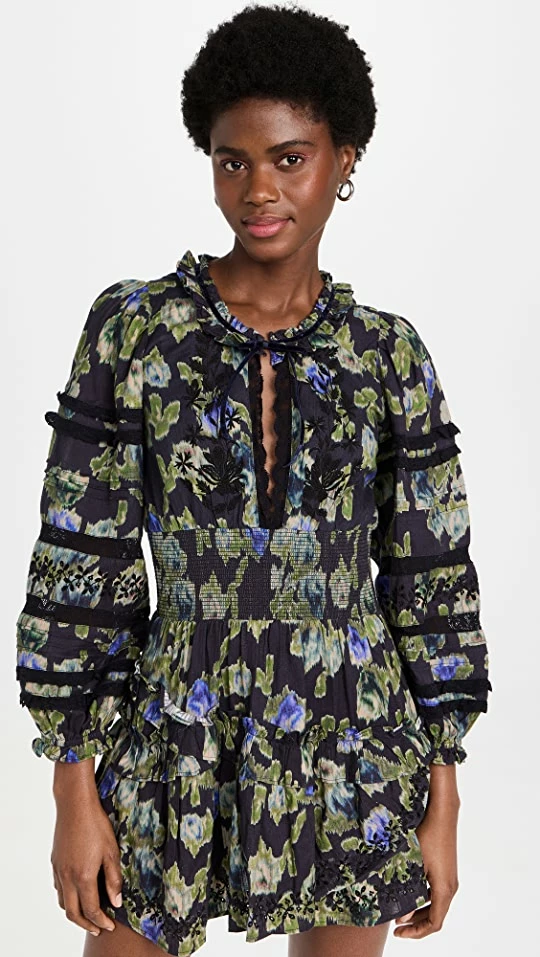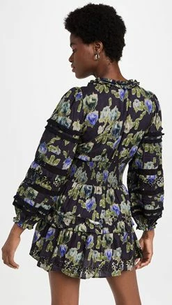 - Long puff sleeves with tiered pleating and elastic cuffs