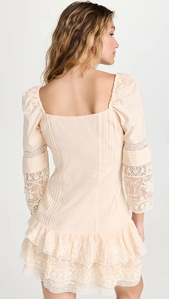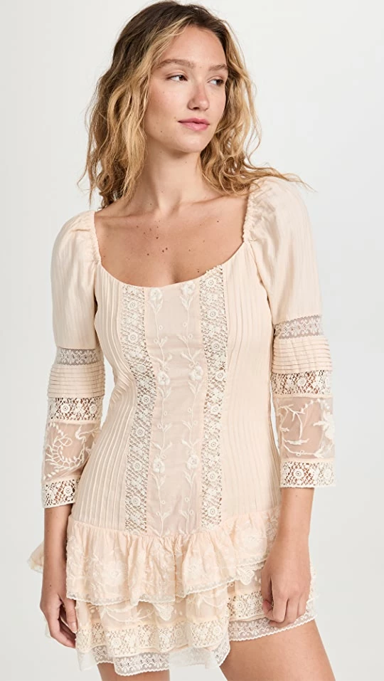- Scoop neckline and 3/4 sleeves with tiered seams