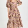 - Tiered skirt and gathered seams