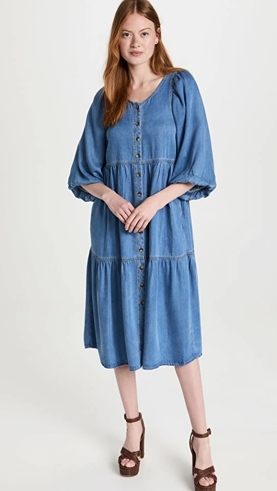 - Round neckline and elbow-length puff sleeves with elastic cuffs