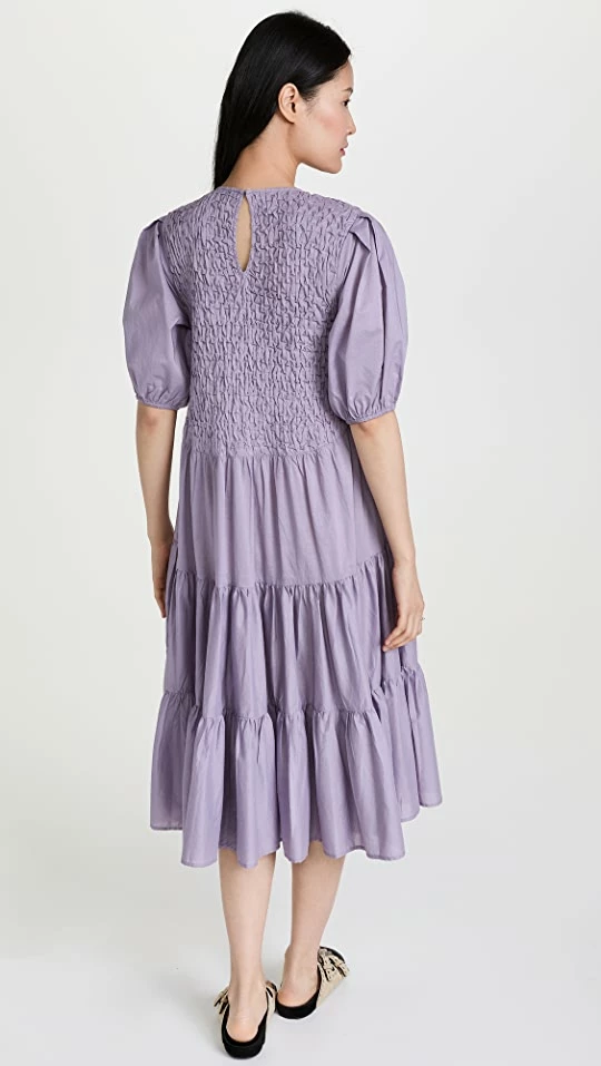 - Round neck and elbow-length puff sleeves with elastic cuffs
