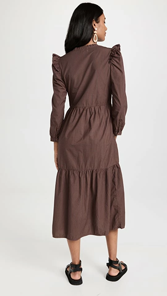- Striped print and ruffle trim