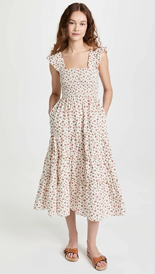 - Tiered skirt and ruffle trim