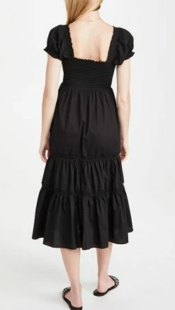 - Smocked elastic bodice and tiered skirt seams
