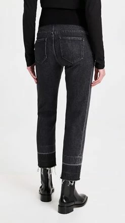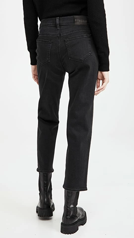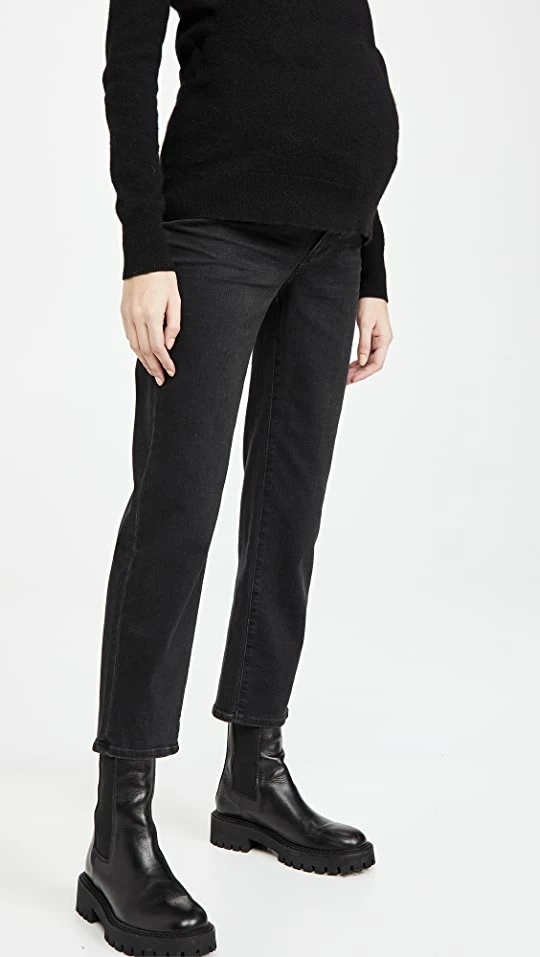 A fresh pair of PAIGE’s Noella maternity jeans in black denim, featuring a classic straight-leg cut and subtle whiskering.