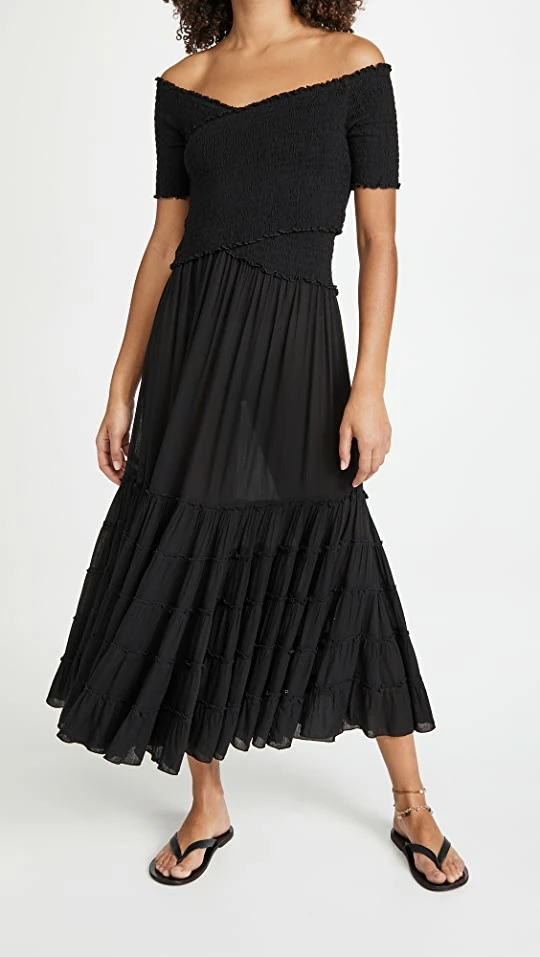 A sweet shoreside layer, this Poupette St Barth dress features a smocked bodice that gives way to a a breezy ruffled skirt, while a crisscross neckline lends extra romance.
