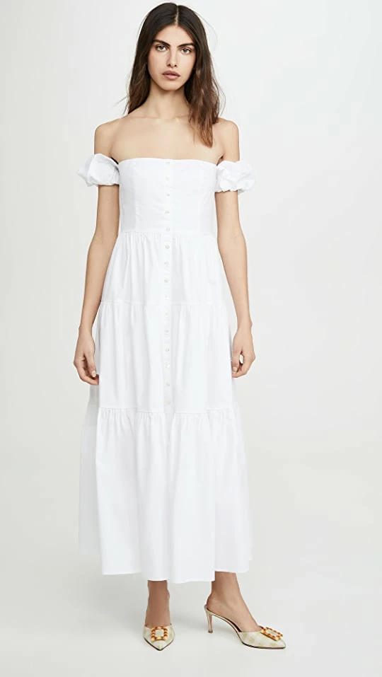 Crafted in crisp cotton and featuring a shoulder-baring silhouette, this swingy STAUD dress is a summer-friendly style that’s ready to soak in some serious sun. Play around with this versatile piece by pairing it with anything from simple slides to pretty pumps.