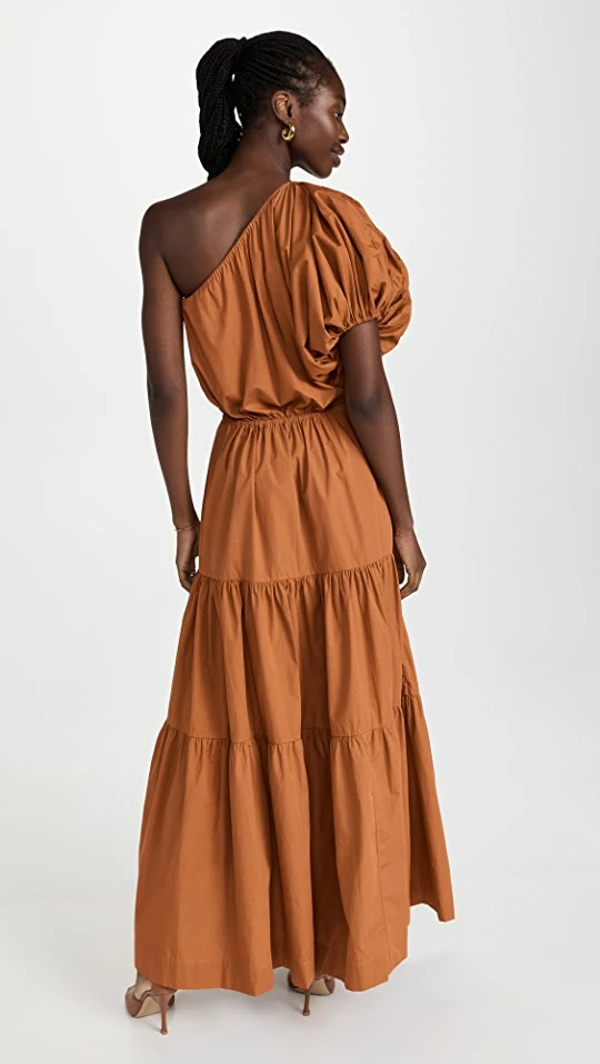 - Tiered skirt and gathered seams