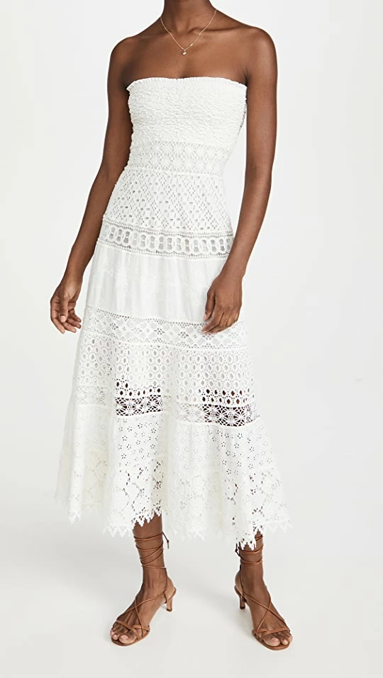 Detailed with gorgeous lace and crochet, this Temptation Positano dress is an elevated style that’s ready for some sun in a strapless silhouette.