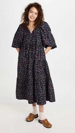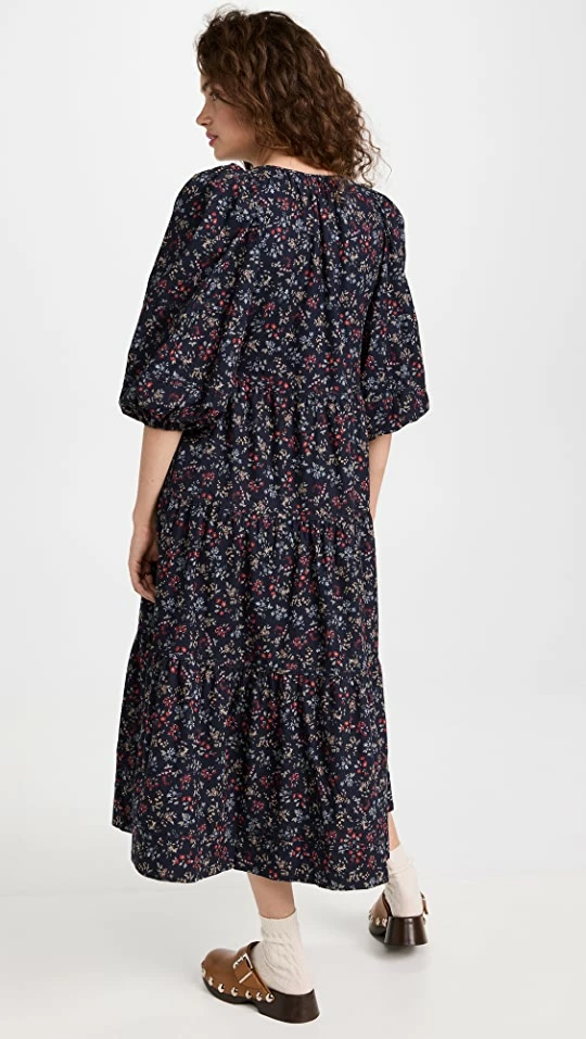 - Tiered design with gathered seams