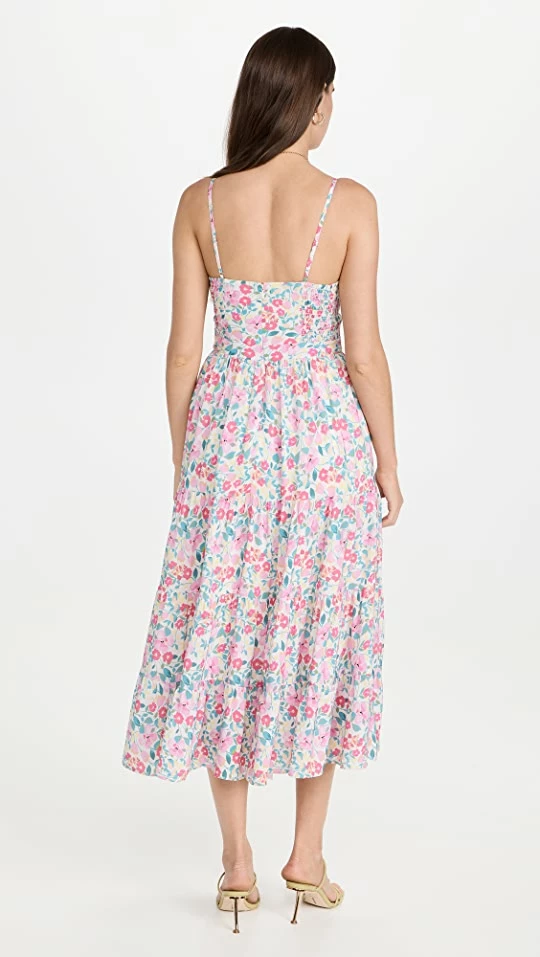 A sweet and swingy Yumi Kim dress for summertime special occasions, accented with a dense floral print and designed with a classic fit-and-flare silhouette. Wear yours with a favorite pair of heeled sandals.