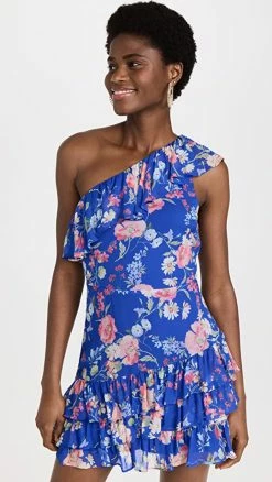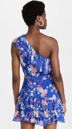 One-shoulder elegance meets floral beauty with this charming Yumi Kim mini dress. Diagonal ruffles add a subtle touch of asymmetry to the silhouette.