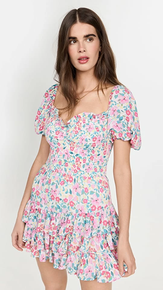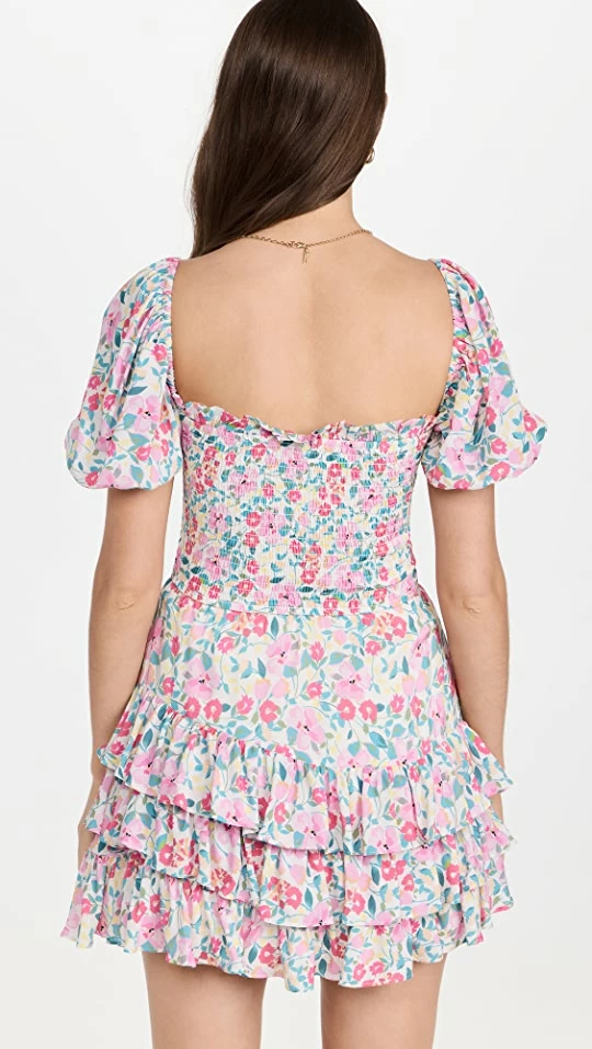 - Sweetheart neckline and puff sleeves with elastic cuffs