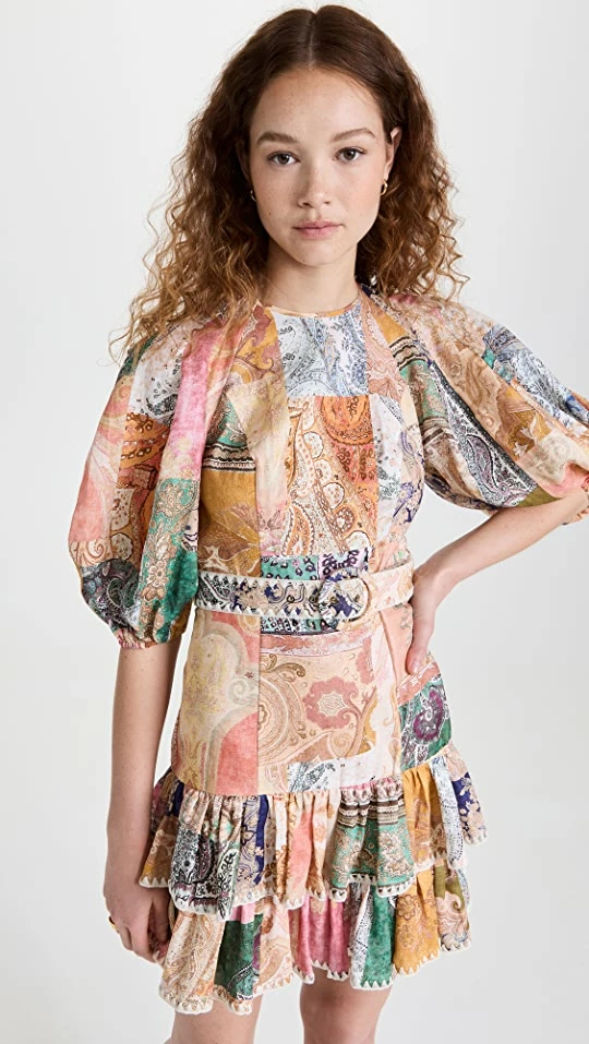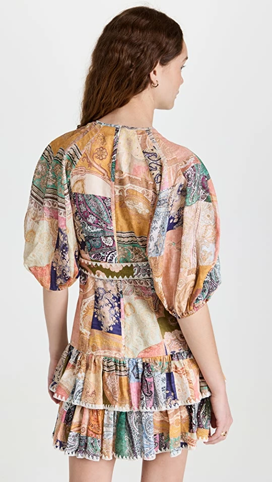 - Round neckline and elbow-length puff sleeves with elastic cuffs